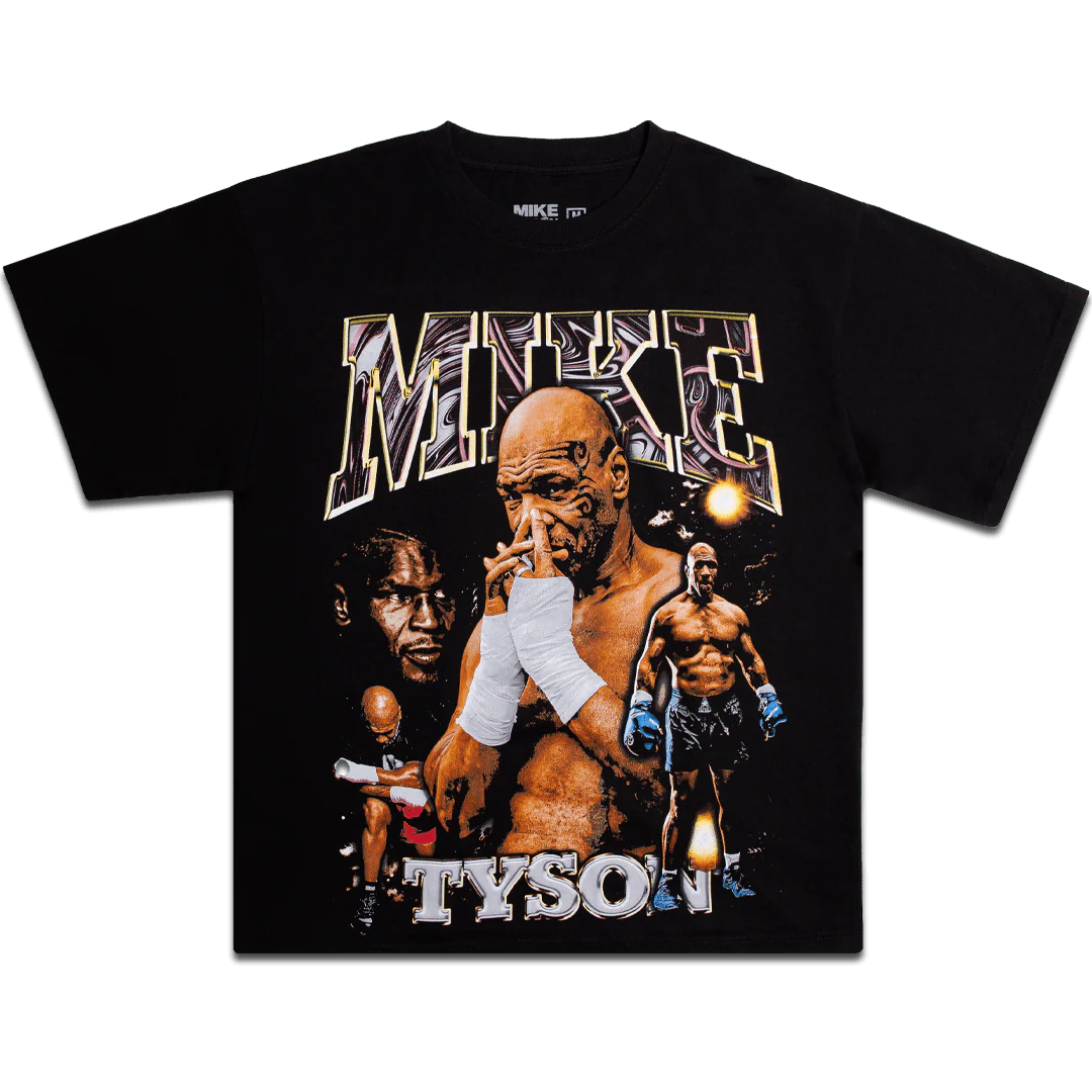 The "Many Mikes Vol. 2" Tee showcases the multifaceted persona of Mike Tyson through a collage of iconic moments. Featuring dynamic imagery from different stages of his career, this shirt celebrates Tyson's journey from a young fighter to a legendary champion. It's a tribute to the enduring legacy of "Iron Mike," perfect for fans who appreciate his complex and powerful story.
