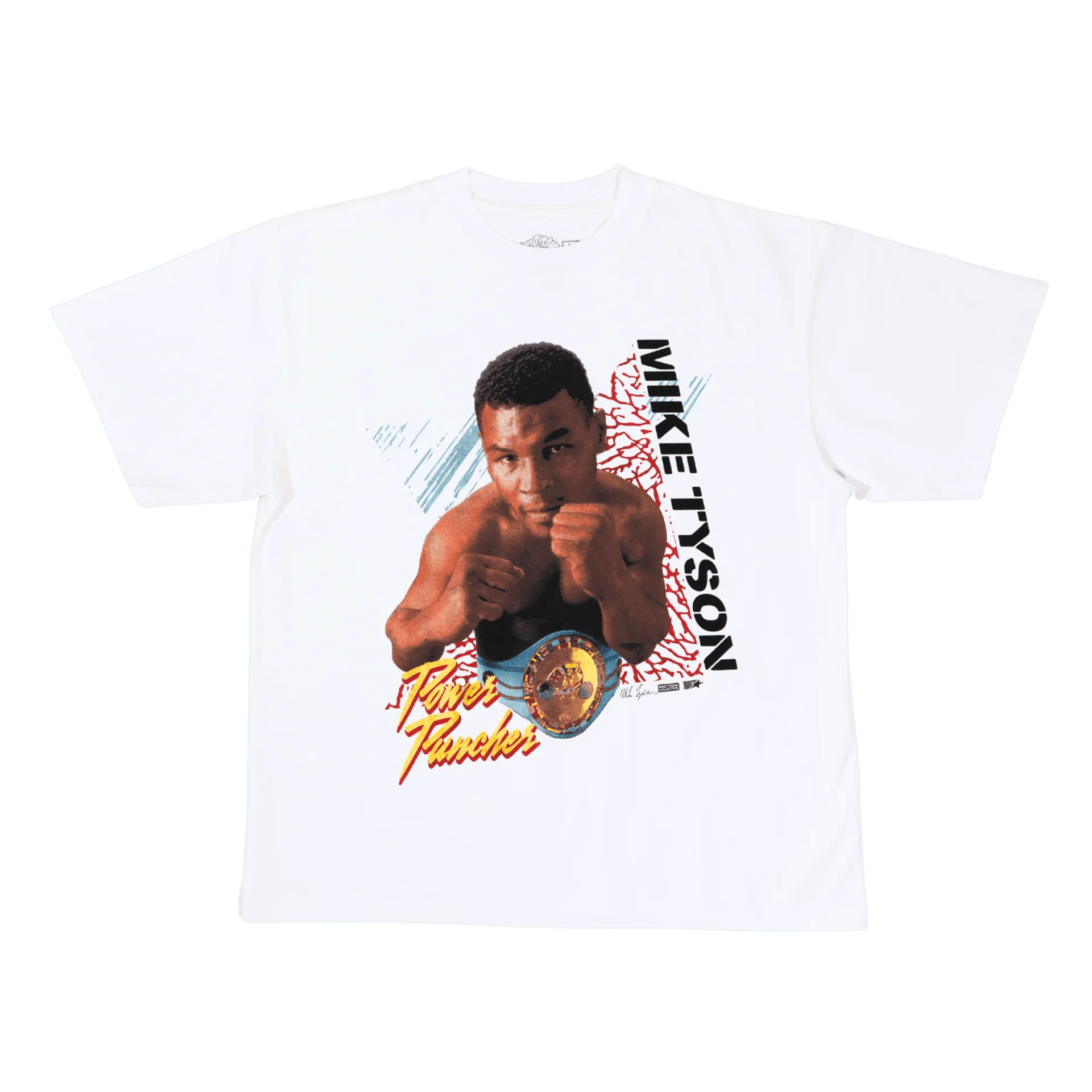 The "Power Puncher" Tee showcases Mike Tyson's unmatched punching power that defined his legendary career. Featuring a vintage-style graphic of Tyson in his prime with his championship belt, this shirt celebrates the ferocity and strength that made him a boxing icon. Perfect for fans who appreciate the raw power and dominance of Iron Mike.